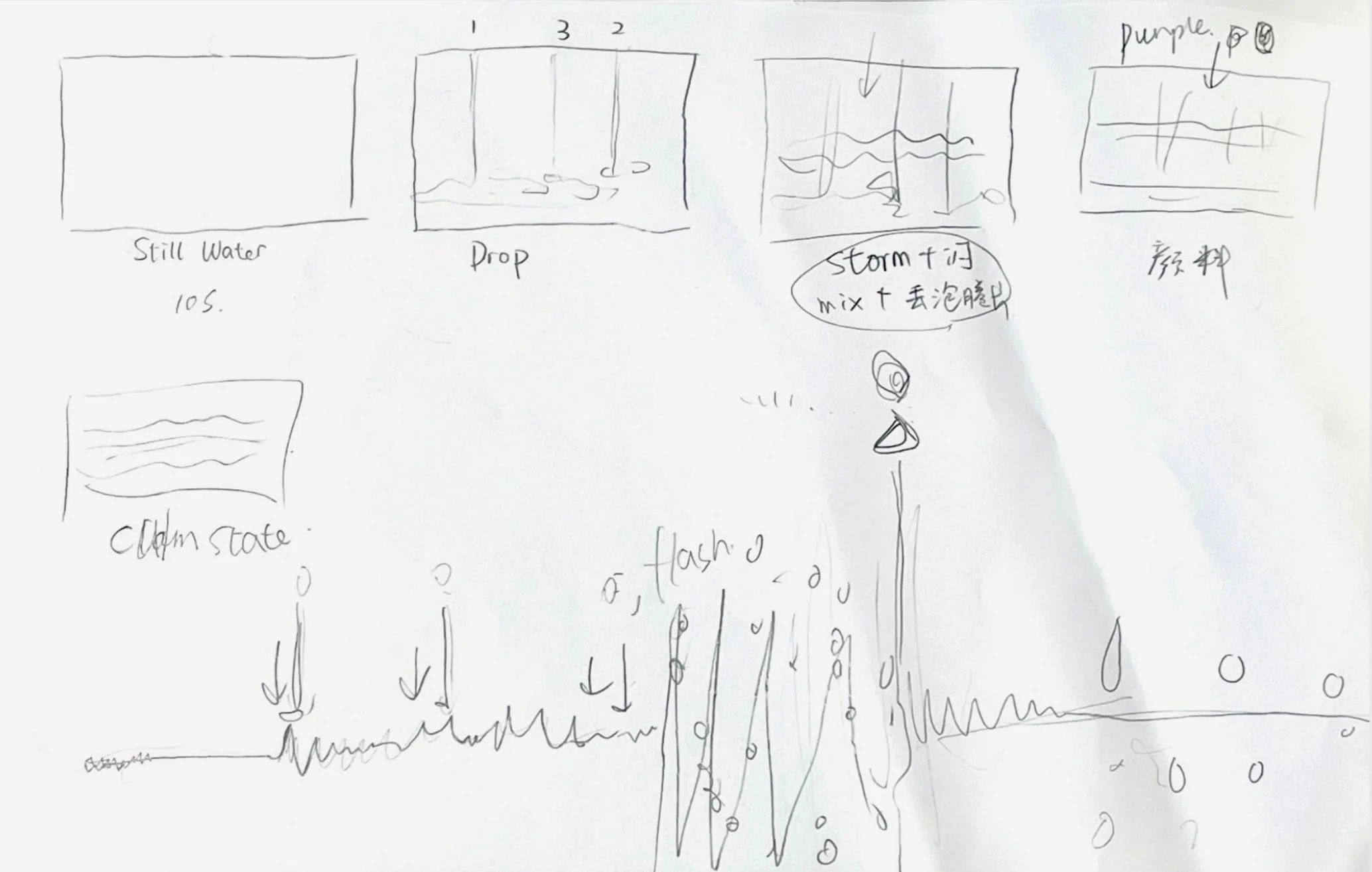 Blending elements of light, sound, visual effects, and physical manipulation of materials, Aqua Mirage creates an illusionary oceanic landscape. Two cameras are set up to capture the realtime videos of pigment diffusion and reaction of effervescent tablets in oil-water mixture, which are synchronized with music.