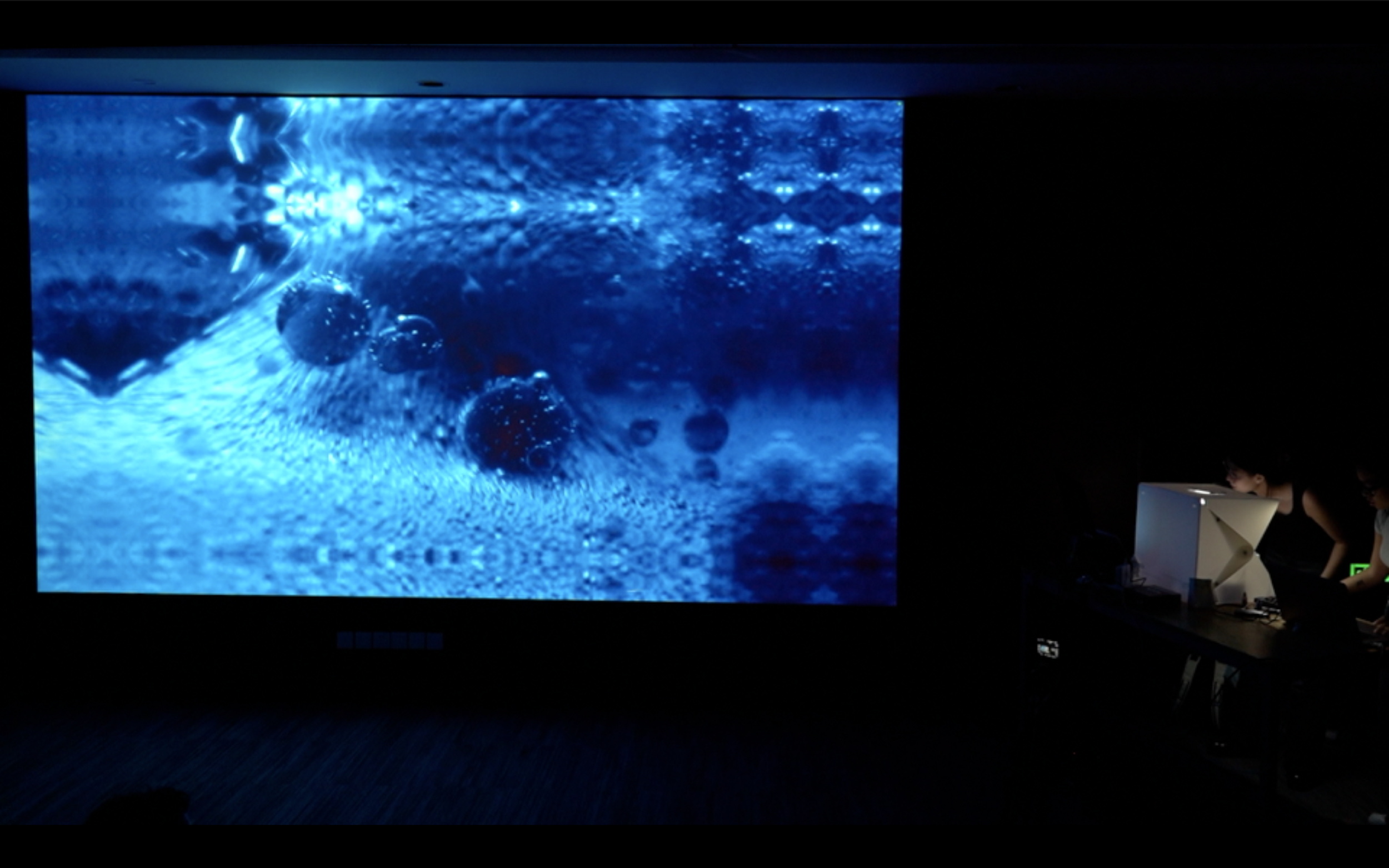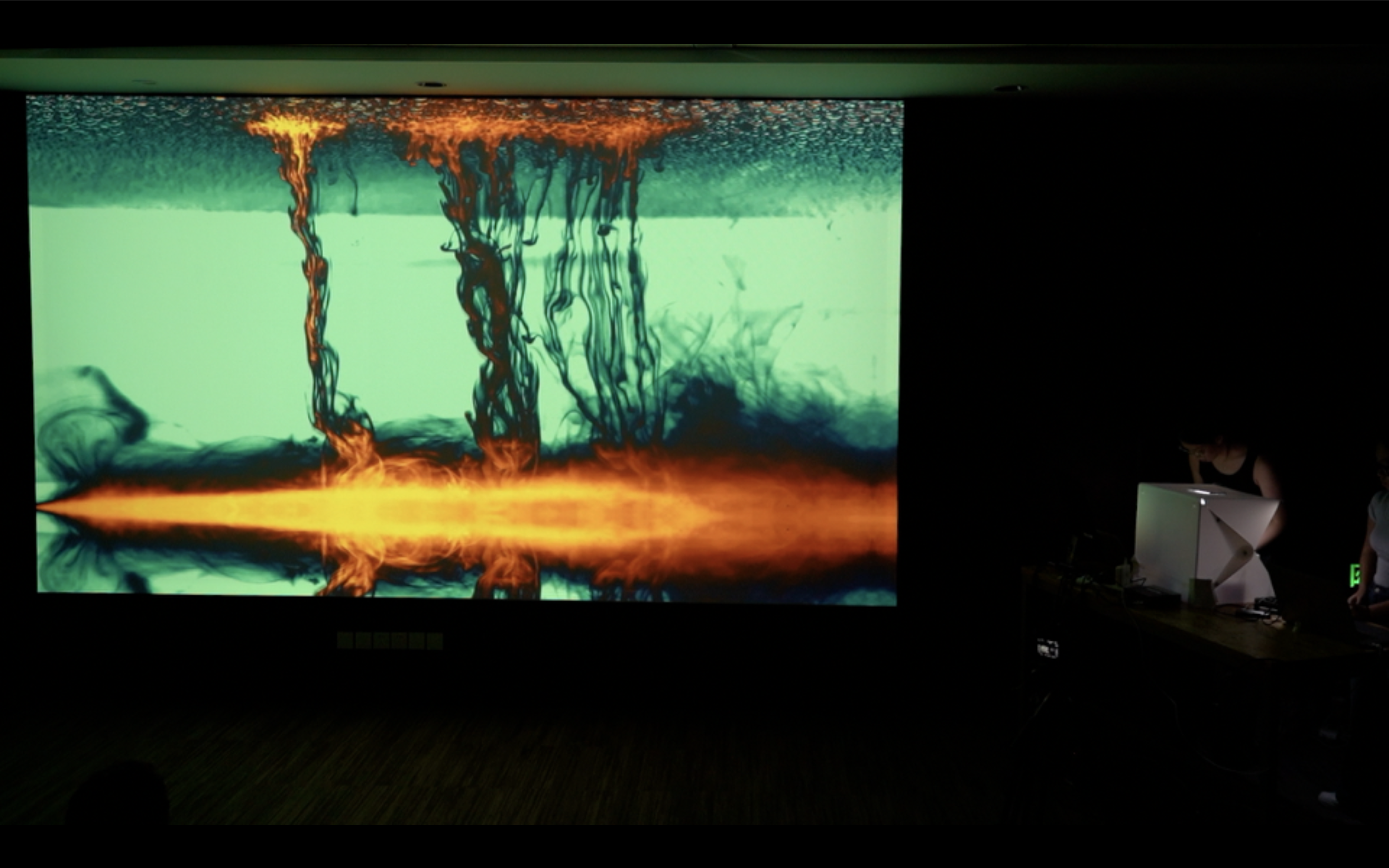Different from traditional AV Performances, the performance integrates realtime physical manipulation of liquids.